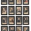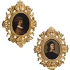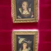 3 oil on canvas portraits dressed in 18th century and 19th century figures in gilt frames. Frame size approx 40 x 50cm.