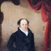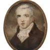Portrait of a gentleman, said to be Baron Beaufort, standing beside a carved stone plinth