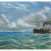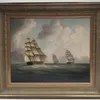 19th Century English School Sailing Ships in Choppy Waters Oil on Canvas Unsigned 36cm x 25cm