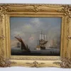 A 19th Century continental school oil on board of boats and schooners coming in and out of the dock, unsigned, in gilt period frame, 22cm x 28cm.