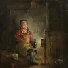 English School (18th Century) Night interior scene with seated craftsman drinking wine oil on canvas, 29 x 24cm, inscribed in pencil on stretcher, re-framed