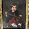 An early 19th cent oil on canvas depicting a child with Parlor guitar