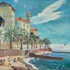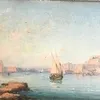 A 19th cent Grand Tour oil study on panel of Naples, signed lower right, 15cm x 34cm