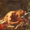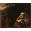 A hermit in a rocky landscape studying a treatise on mathematics unframed