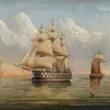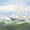 English School 19th century H.M.S Duncan in winter, watercolour on paper, 21.5cm x 32cm frame size