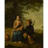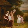 A 19th Century English school oil on canvas of folk relaxing in a wooded area, framed and unsigned, attributed to Joseph Thors, 46cm x 28cm.