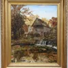19th century European School. A windmill in an early autumnal landscape. Oil on canvas, 89 x 70cm. Stiff leaf gilt gesso frame