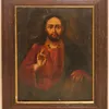 RUSSIAN SCHOOL ICON (17TH CENTURY) Christ offering a Blessing oil on panel 36 x 29cm - overall size including frame. Condition: slight bow to panel, scuffs and specks of paint loss.