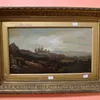 A 19th Century English school oil on canvas of a castle near Wales, inscription t0 back, unsigned, within period gilt wood frame, 45cm x 25cm.