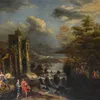 Landscape with classical ruins and the Flight into Egypt