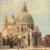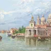 An interesting large 20th cent Italian oil study of Venice signed, labels verso