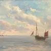 A 19th century oil on glass. Dutch in style of a coastline scene.