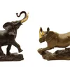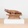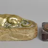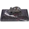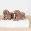 A pair of 18th or 19th century serpentine style marble recumbent lions, each realistically modelled and upon rectangular bases, each approx. 26cm long x 10cm wide. (2) Further details: both with damag…