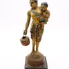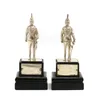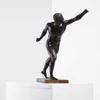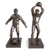 PAIR OF SILVERED METAL FIGURES FOOTBALLERS AND TWO OTHER AMERICAN BRONZED METAL FIGURES OF SPORTS MEN (4)