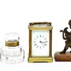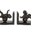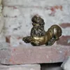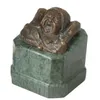 A desk seal and a cold painted bronze, late 19th Century, the desk seal with a winged cherub surmont and the cold painted bronze depicting a cat dressed as a fireman.