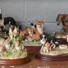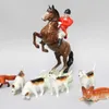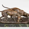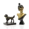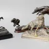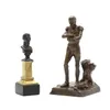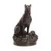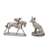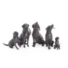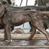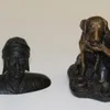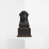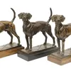 A large simulated bronze bust of a setter on wooden base together with three further miniature metal setter figures