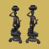 A pair of early 20th century copper companion stands, each cast as a Dutch child. 52cm high