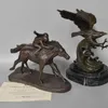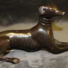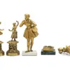 A collection of assorted metalware. comprising a large pair of brass baluster table lamps .overall Height - 68cm a collection of four bronze and other figures to include a bronze greyhound figure A/F …