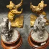 Substantial Pair Of Silver Eagles On Stands With Realistically Designed Tree Trunk Columns With Gilt Detail