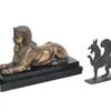 A PAIR OF BRONZE SPHINXES ON GIALLO MARBLE BASES, ITALIAN OR FRENCH, EARLY TO MID 19TH CENTURY