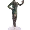 A decorative bronzed figure of woman and mermaid, standing on a raised stepped gilt metal plinth. H61cm.