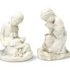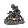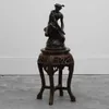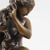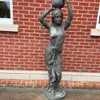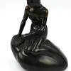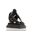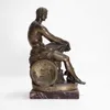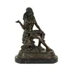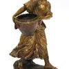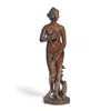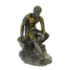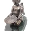 A PATINATED HOLLOW CAST BRONZE FIGURE OF A SEATED MAIDEN WITH FISH cast as a contemplative young maiden seated upon a naturalistic rocky outcrop, her head inclined gently with a basket of fish beside …