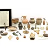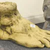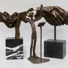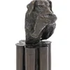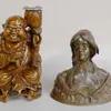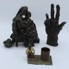 A bronze figure of the virgin and child together with a resin replica of a Roman bronze protective hand ( at fault) and a cold painted figural match holder