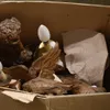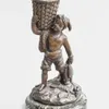 A bronze novelty table vesta in the form of a peasant carrying a wicker basket on his back smoking a cigar raised on a circular slate base, circa 1900, height 16cm.