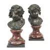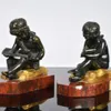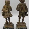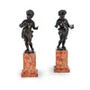 S Omer. a pair of 19th century bronze figures of a schoolboy and girl, each raised on marble plinth. Signed to base edge 21.5cm and 23cm