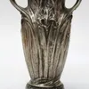 A heavy white metal ( possibly nickel plated bronze/ brass) sculptured to resemble narcissus flowers and leaves mounted on a marble base. Height 37cm, signed E Lelievre and cat by Colin of Paris