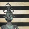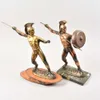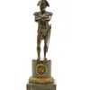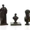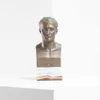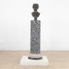 Two 20th century cast metal figures comprising one of a Roman warrior (missing sword and loose from stand), the other a bust form of Nefertiti. (2)