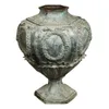 A 19th century patinated bronze urn, of baluster globular form with small circular foot and twin curved handles to body, with hole to base centre but no base, approx. 29cm high. Further details: surfa…