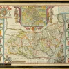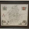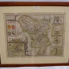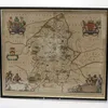 John Speed: A hand-coloured Map of Darbieshire 1686 with Arms if the Earls of Derby. English text to verso. Framed and glazed