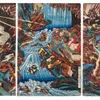 Peter Green Hand Painted Artwork (UK) ( Fleetwood Mac ) Two pages that have been taken from an artbook on which Peter Green has drawn a picture in felt tipped pen, crayon and colour pencil. They come