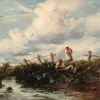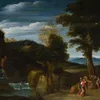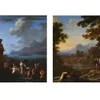 Dionys Verburgh(Rotterdam circa 1655-1722)An extensive river landscape with a horseman and his dog on a country path; and An extensive river landscape with fisherman by a bridge (2)