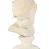 A composite stone bust of a young Lady in a bonnet, approx. 44cm high overall. Provenance: From the contents of a Derbyshire Home.
