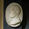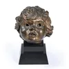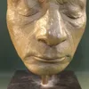 A bronze death mask of a gentleman on square black marble base, mask 18.5cm high, total height 30cm