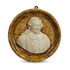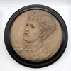 AN ITALIAN CARVED STAINED BOX OR SYCAMORE OVAL TONDO RELIEF PORTRAIT OF JULIUS CAESAR