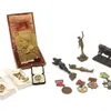 LOUIS XVI STYLE GILT-METAL OSTRICH AND BOY CLOCK CASE TOGETHER WITH VARIOUS CLOCK PARTS (QTY)