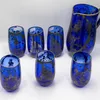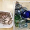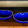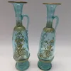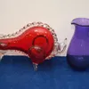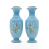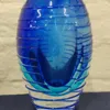 Pair of mid century blue glass vases, bubbles trapped in the glass