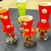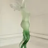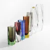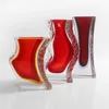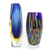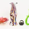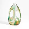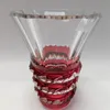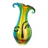 Murano abstract glass vase, green ground body on clear base with multicolour decoration and red rim. Height approx 35cm.