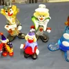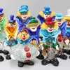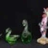 Three Murano style coloured glass birds and two Murano style coloured glass clowns (5)