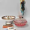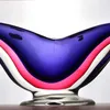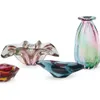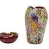 Murano and other glass. A collection of five pieces to include: a large multi-coloured Romanian vase with fluted rim; a bowl in a Murano type abstract design with fluted rim and circular footed base;