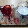 Murano Glass - A circa 1960 Barovier & Toso tray, with twisted red and clear glass edging, frosted etched centre design of a courting couple. The tray having twin brass stylised handles and circular w…