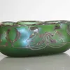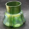 An Art Nouveau iridescent green glass vase with ribbed moulding, 12cm high