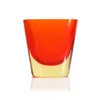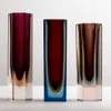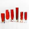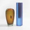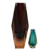 A Murano sommerso brown, blue and amber faceted glass block vase, height 29cm together with a Murano sommerso yellow and blue faceted glass block vase, height 12cm. (2) Condition report,