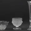 A GROUP OF THREE CLEAR GLASS AND SILVER APPLIED VASES, MODERN