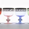 Loetz style purple glass with unmarked white metal art nouveau style floral decoration.