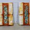 Murano Glass; two orange brown standing Scottie dogs, one with a green and one with black collar and a clear glass Scottie dog