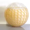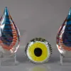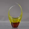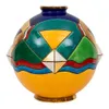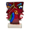 1970s/80s Murano glass sculpture of circular form with red, blue and yellow panels. Indistinct signature to base. Height 31 cm.